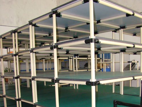 线棒式货架主要采用一种钢制外侧包有PVC材料的圆管。用多种型号的连接件用不同的连接方式可组合成不同的框架结构。此种产品一般主要用于汽车、电子等行业。