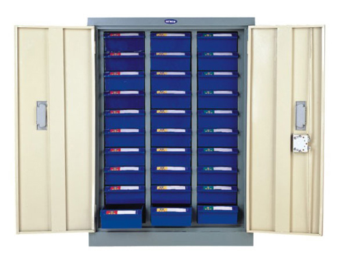 工具柜——该种产品作为一种零部件备用存放的专用存放工具。具有存放量大,量重的特殊功能,另外特有的分隔分类有很强的目测效果;